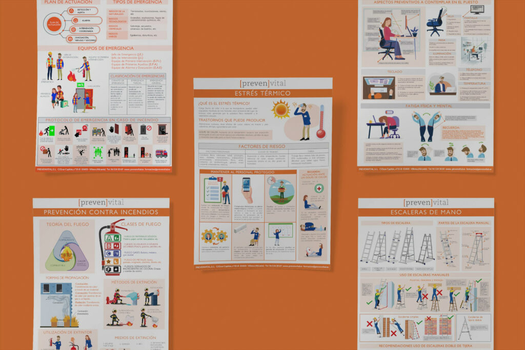Realización para la empresa Prevenvital de carteles informativos de prevención y de seguridad.